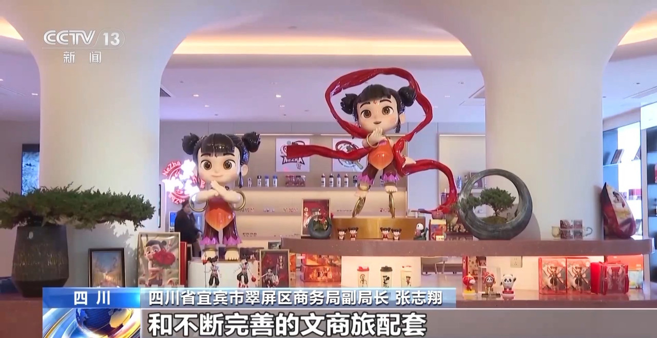 在四川宜宾市翠屏山,“跟着电影去旅行 打卡哪吒故乡宜宾”持续点亮旅游新风尚,电影+国潮、电影+美食,为文旅产业的发展注入了更多动力。