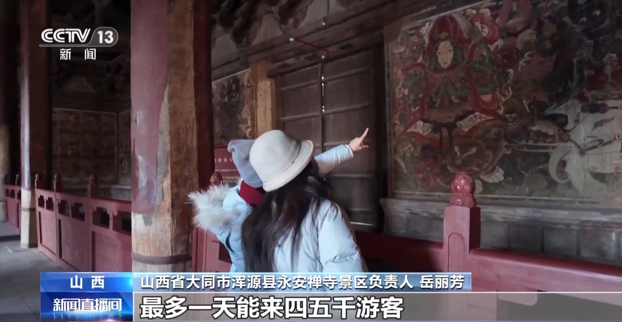 山西省大同市浑源县永安禅寺景区负责人 岳丽芳:以前永安禅寺特别小众,平时景区里也冷冷清清,一年到头游客也就是几千人,连维持基础运营都吃力。现在不一样了,电影火了之后,最多一天能来四五千游客。
