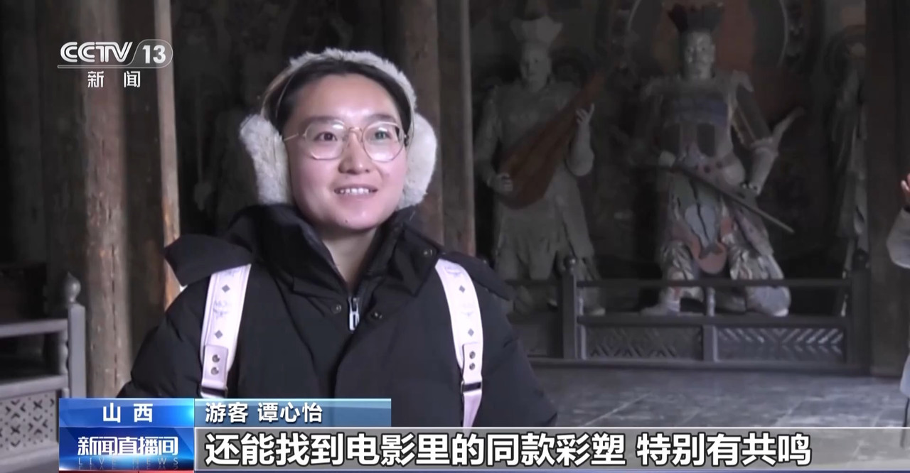 游客 谭心怡:来到这里看到特别多的辽金古建筑,还能找到电影里的同款彩塑,特别有共鸣。好多电影、游戏都来取景,让古建以更鲜活的方式被记住。
