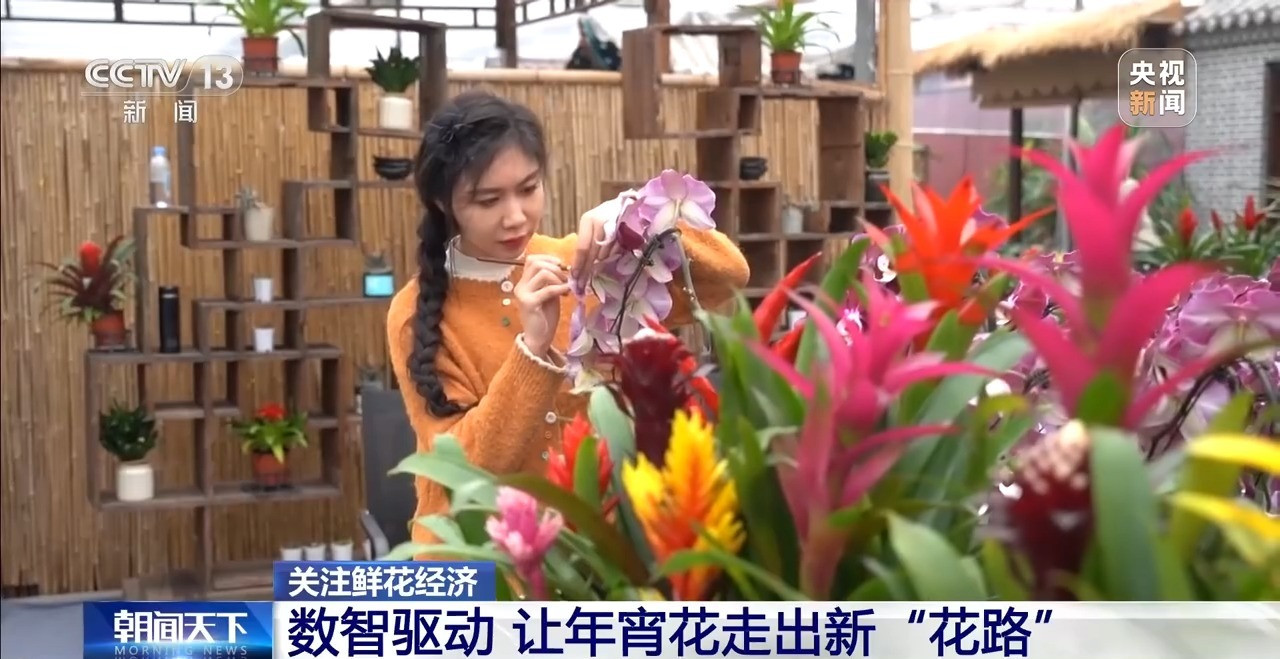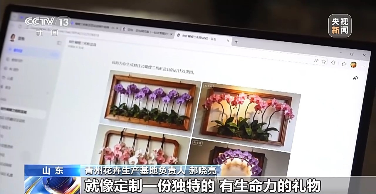 山东青州花卉生产基地负责人 郝晓亮:特别是年轻人给我们很多启发,花卉通过AI数据助手,可以精准多样选造型、搭花材,就像定制一份独特的、有生命力的礼物。