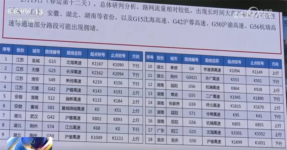 根据研判,江苏、安徽、湖北、湖南等省份以及沈海高速、沪蓉高速、沪渝高速、杭瑞高速等通道路段可能出现拥堵,可以看到车流主要还是集中在长三角和中部地区。