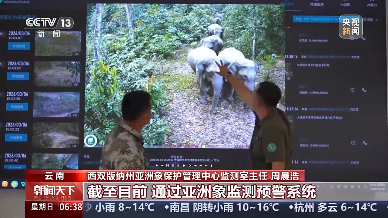 西双版纳州亚洲象保护管理中心监测室主任 周晨浩:截至目前,通过亚洲象监测预警系统已累计发布预警1.52万余次。系统利用人工智能技术,通过超过10万张亚洲象照片进行训练,如今识别正确率已达99%。