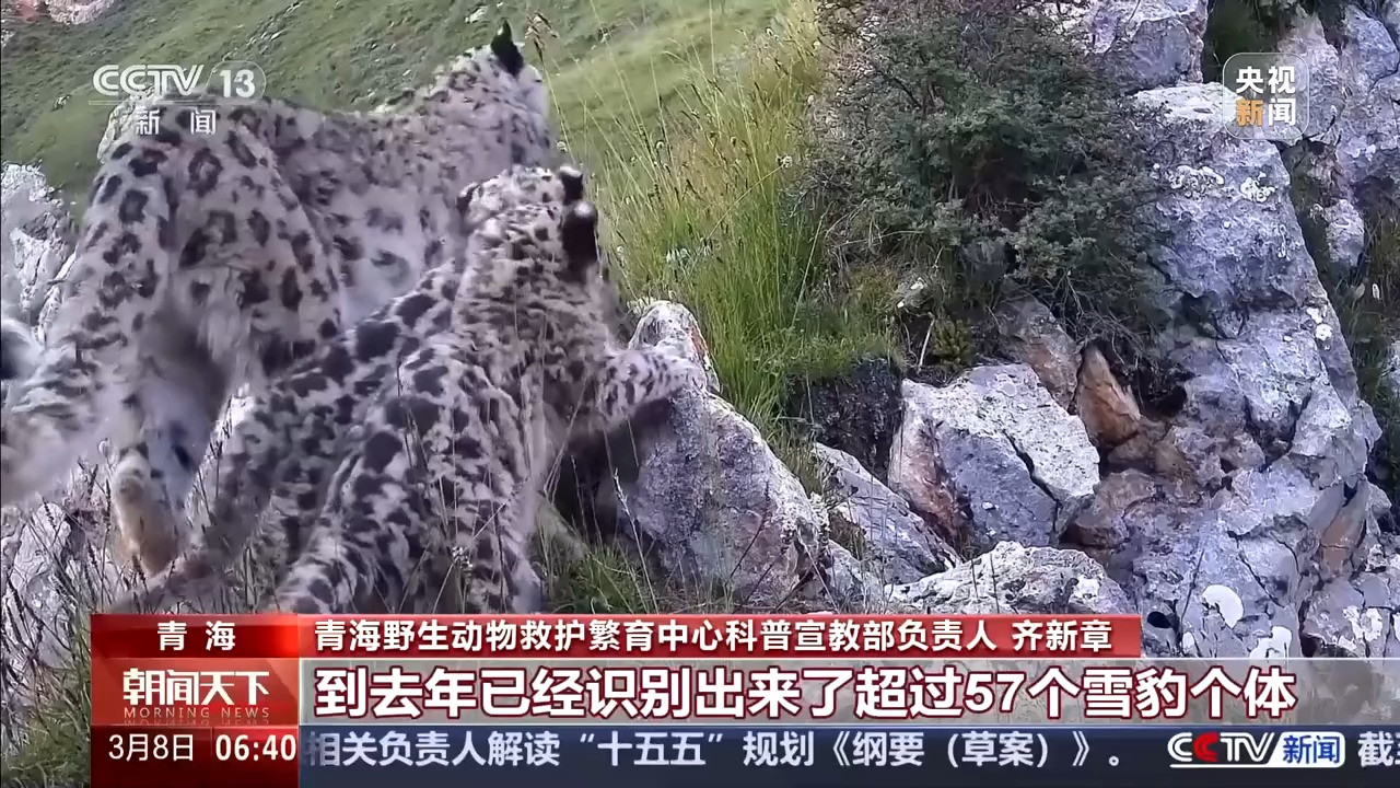 青海野生动物救护繁育中心科普宣教部负责人 齐新章:这些年青海的生态环境是持续地向好改善。像雪豹这样的野生动物的数量也是稳步增加,像西宁2020年第一次拍到野生的雪豹,到去年已经识别出来超过57个雪豹个体。还有这些保护措施得力,也是有越来越多的雪豹出生,它们向外探索新的领地的时候就可能会遇到一些困境和挑战。