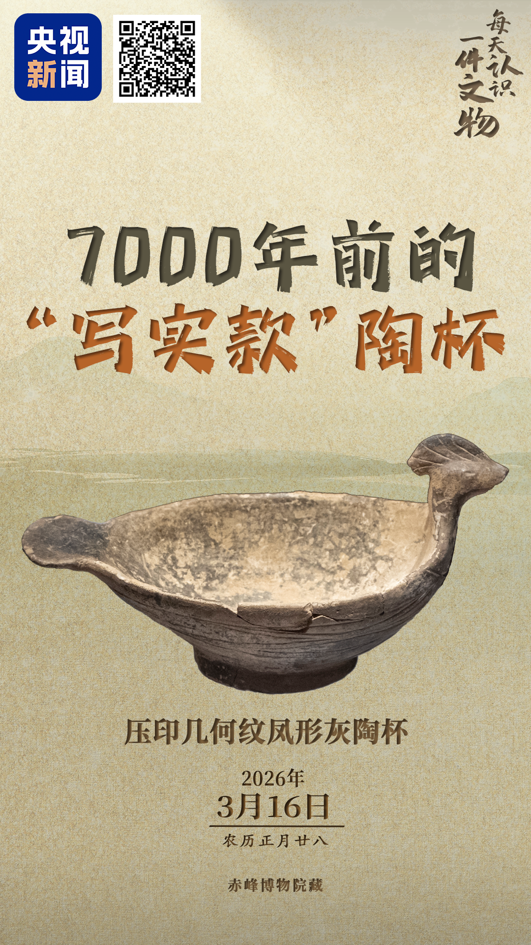 距今约7000年的“写实款”凤形杯