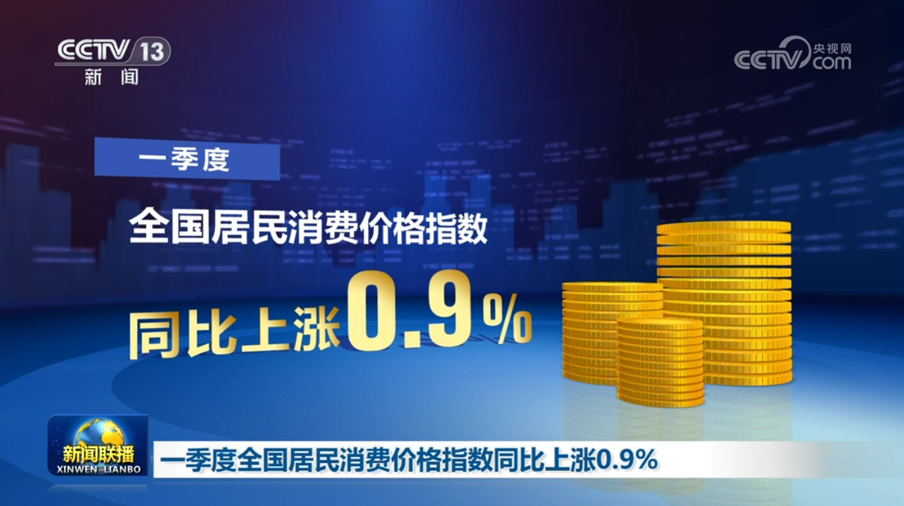 国家统计局4月10日发布的数据显示,一季度,全国居民消费价格指数(CPI)同比上涨0.9%。3月份当月,全国居民消费价格指数同比上涨1.0%。