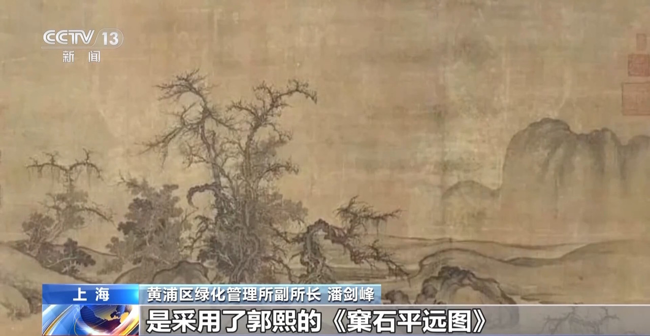 黄浦区绿化管理所副所长 潘剑峰:口袋公园在设计时借鉴了郭熙的《窠石平远图》,用现代手法对它进行解构和演绎。在这里,想给游客们提供一个可以坐下来休息,同时可以享受美景的地方。