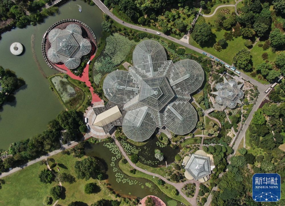 ↑这是7月11日拍摄的华南国家植物园展览温室群(无人机照片)。