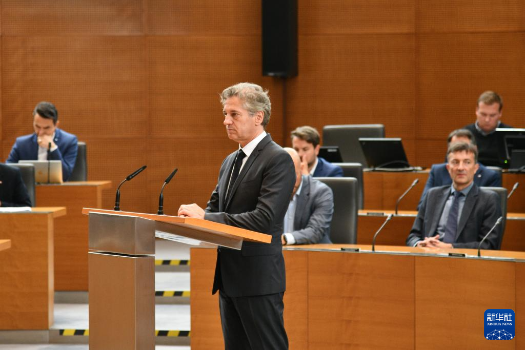 6月4日,斯洛文尼亚总理戈洛布(前)在卢布尔雅那出席国民议会会议。新华社/斯通社