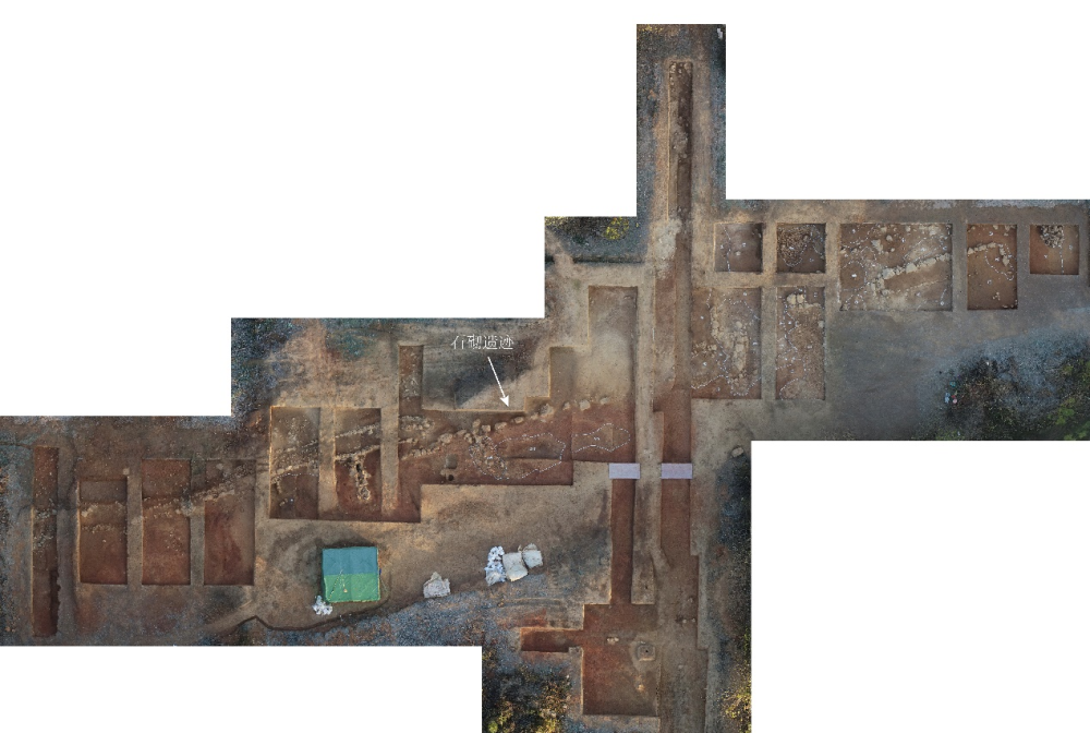 盘龙城遗址考古项目负责人、武汉大学历史学院副教授孙卓介绍,杨家湾北坡首次揭露出走向和形状较为明确的大型条带状石砌遗迹,年代属于中商时期,存续于公元前1300年至公元前1200年。目前已揭露成型的遗迹东西长约81米,最宽处约5米。勘探总长度约600米,推测可能具有公共性或防御性功能。