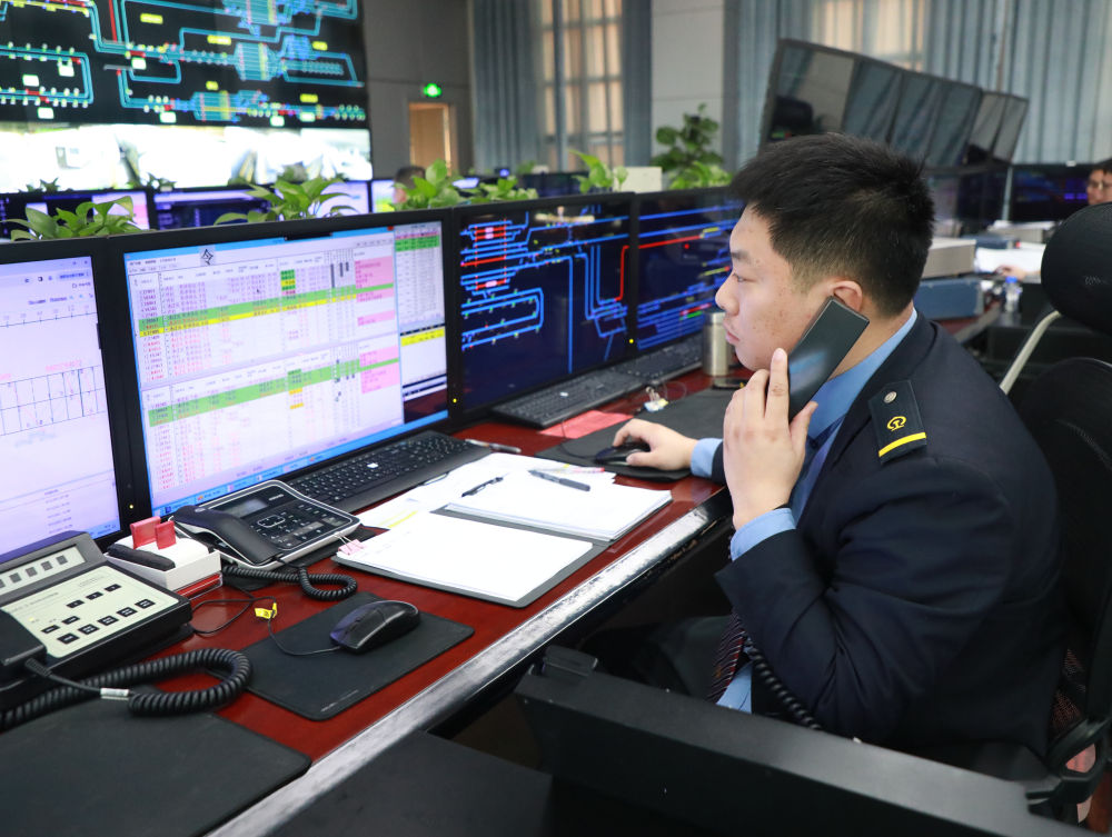 “叮铃铃……”“嘟嘟嘟……”早晨6时,天还没亮,刘淼就已早早地来到调度指挥大厅,刚打开门,就听见屋内电话声、车机联控声响起,一条条车次信息在大屏幕上滚动闪烁。刘淼快步走向工作岗位,收集当日列车到发情况、临客加开情况信息,为一天的工作做准备。