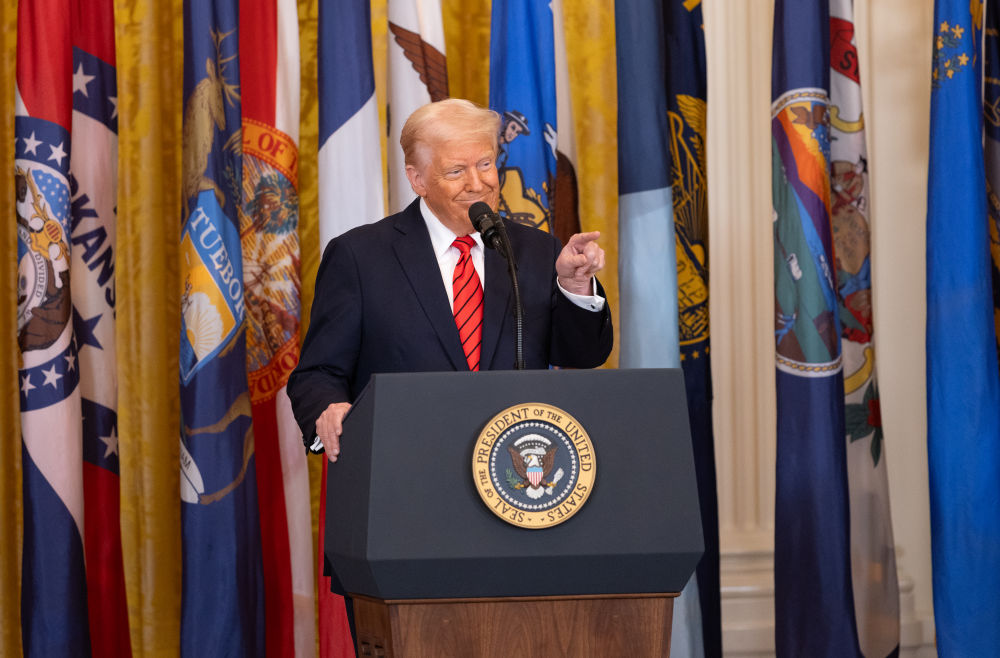 3月20日,美国总统特朗普在华盛顿白宫签署行政令前讲话。新华社记者胡友松摄