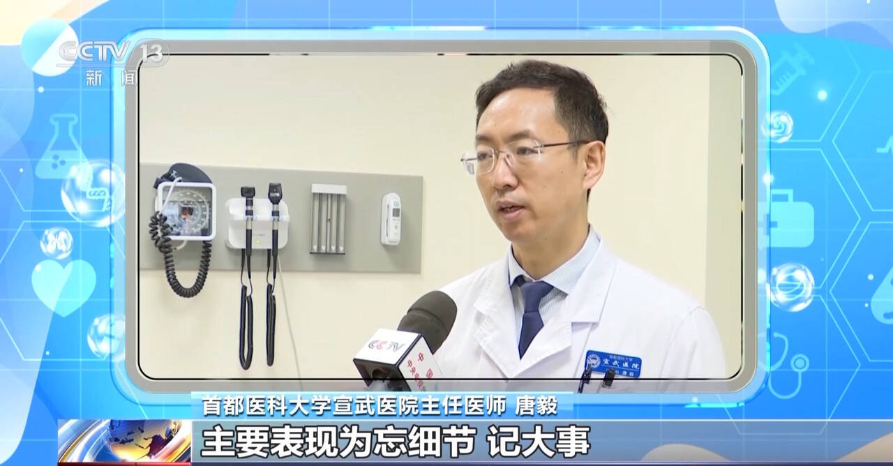 首都医科大学宣武医院主任医师 唐毅:老年人的良性健忘,它主要表现为忘细节、记大事。比如他忘记要买菜的菜名,但是还记得买菜这件事儿,经过提醒之后,他也能够想起来。而阿尔茨海默病的早期遗忘,往往就更为显著,比如刚说过的话就忘,一天重复问同一个问题,家属提醒之后也想不起来。同时,性格变得淡漠或者急躁,熟悉的家务也经常出错,说话变得词不达意,如果同时出现这些表现的话,就要高度怀疑是阿尔茨海默病的早期,尽早到医院去就诊。