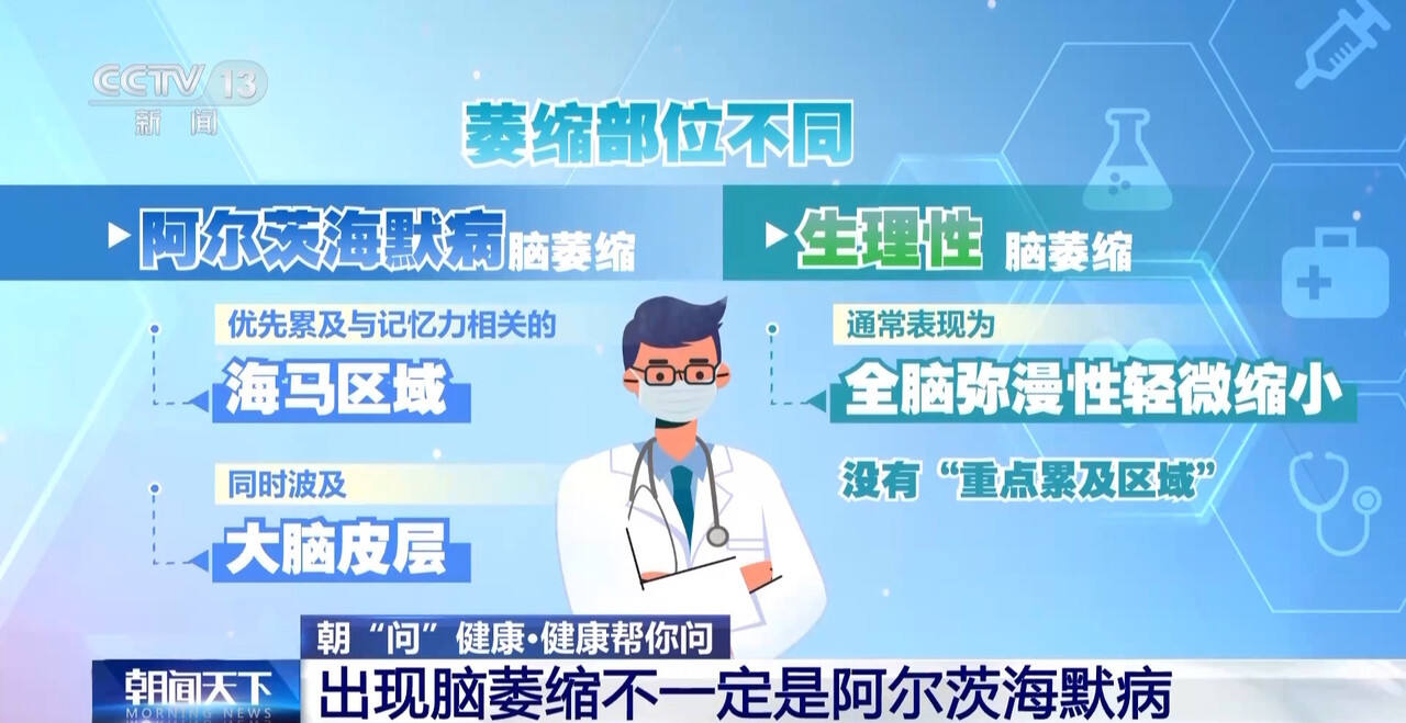 专家介绍,阿尔茨海默病会导致脑萎缩,但是发现脑萎缩,并不等于会患阿尔茨海默病。脑组织随着年龄增长出现体积缩小,是一种生理现象,就像岁数大了皮肤会出现皱纹一样。