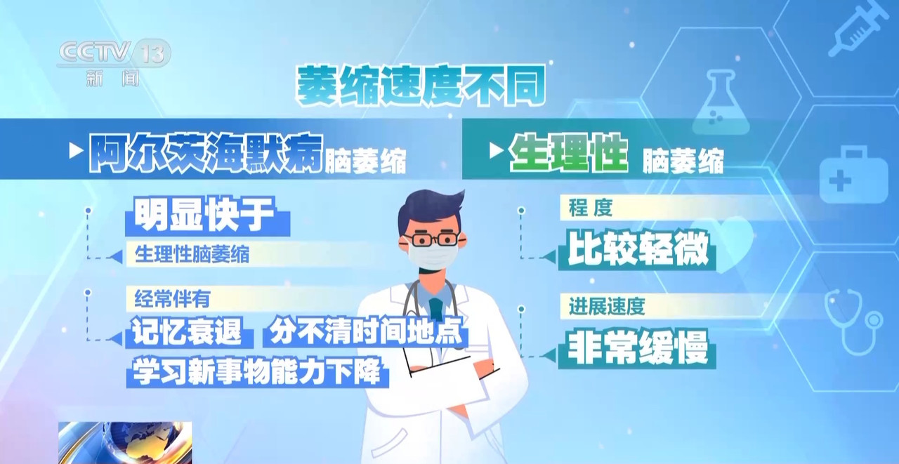 阿尔茨海默病的脑萎缩和生理性的脑萎缩区别主要有两点: