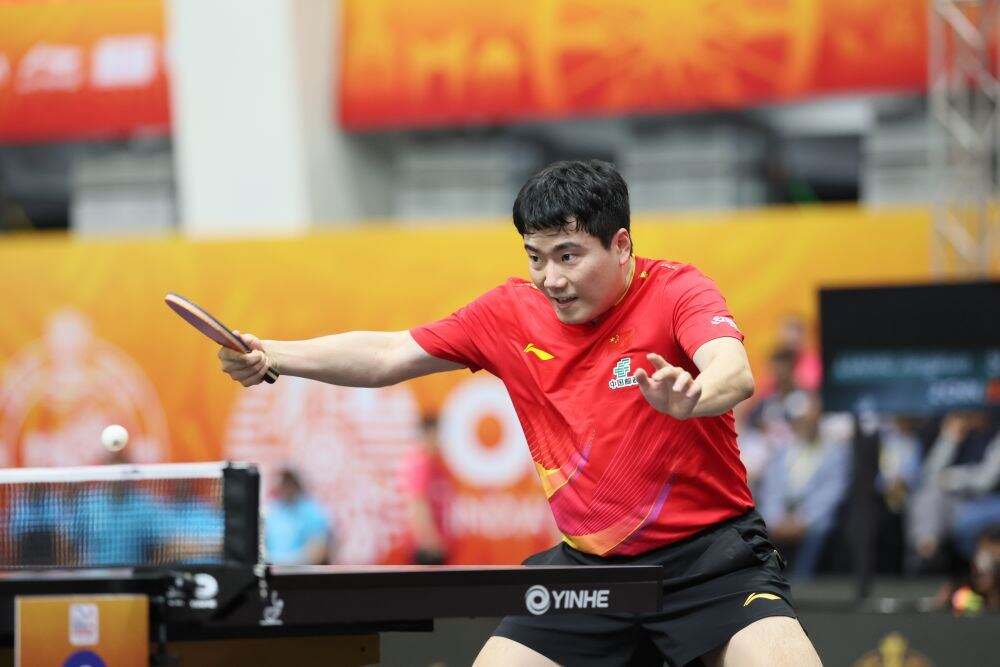 男团决赛,国乒男队对阵中国香港男队。首盘,林诗栋对阵老将黄镇廷,“小石头”仅用时15分钟就以11:8、11:4、11:4速胜对手,为中国男队拿到第一分。