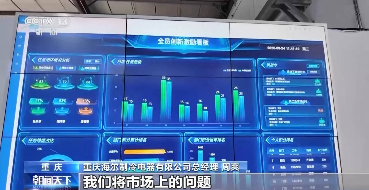 重庆海尔制冷电器有限公司门体工序班长 王剑:就像之前我们有个新平台,刚开始生产的时候有废品率高的问题,我们班组和我一起5个人,我们组队进行抢单,解决了问题20余项,我们感觉非常有成就感,我们也更愿意想办法去钻研去解决问题。