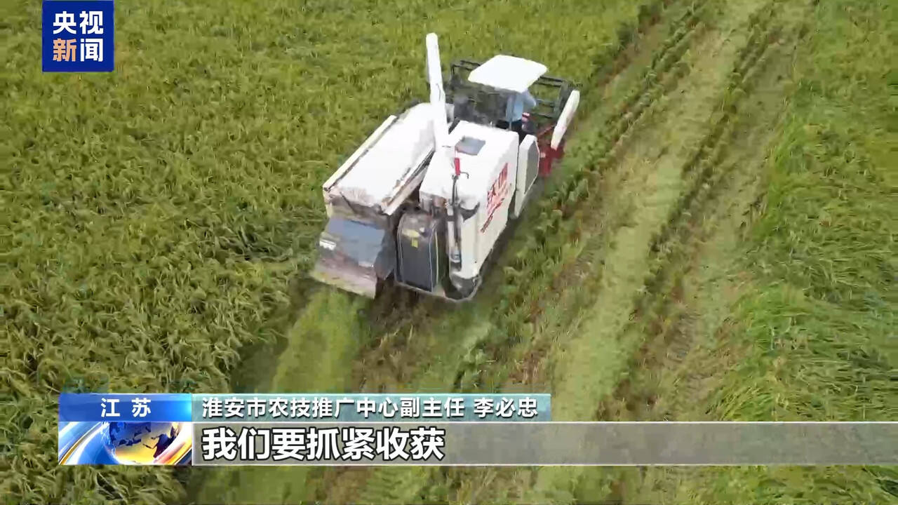 淮安市农技推广中心副主任 李必忠:最近雨水比较多,我们所有农户要疏通田间沟系,排干田里积水,对已经成熟的和即将成熟的水稻,我们要抓紧收获。从预报来看,最近一个礼拜是晴好天气,是收获的最佳窗口期。