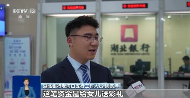 湖北银行老河口支行工作人员 周宗泽:取款人说这笔资金是给女儿送彩礼,转账人说是朋友之间的转账,这就引起了我的怀疑。