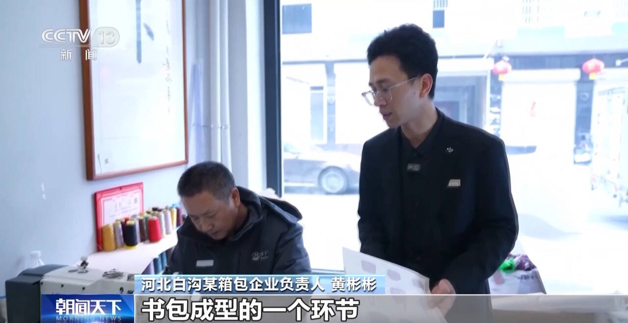 河北白沟某箱包企业负责人 黄彬彬:我们开发了很多的新品,就是为了每天能上新十几组新品。我们最后的一个成品,书包成型的一个环节,这个师傅是将近有30年的经验,每一个环节他都是知道怎么去缝合和成品这一块,所以说效率会特别高。