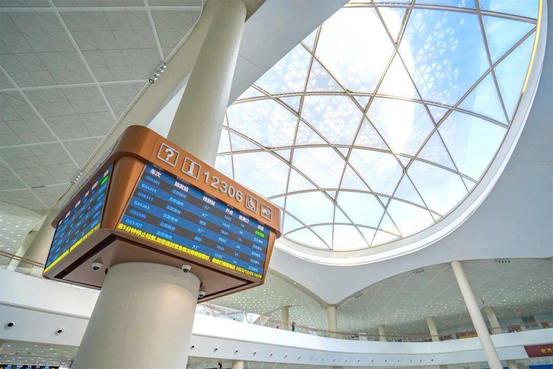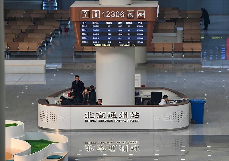 运营初期,北京通州站开行12对列车,办理京唐城际铁路和京滨城际铁路(建成段)列车始发终到作业。北京通州站也是“多网融合”的重要节点,未来还将集成地铁、城际铁路、市郊铁路及公交,预留游船码头与航站楼值机功能,中国铁路设计集团有限公司副总工程师秦宝来介绍: