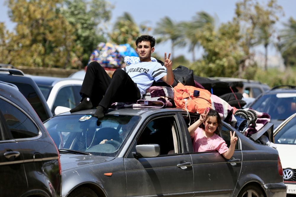 停火给黎巴嫩民众带来喘息之机,大批流离失所者得以重返残存的家园。颠簸途中,兴奋的孩子们纷纷探身车外,比出胜利手势;大人们目睹被炸得破烂不堪的建筑和在空袭中烧毁或炸坏的车辆,心情五味杂陈。