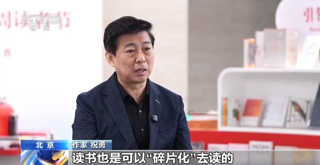 作家 祝勇:读书也是可以“碎片化”去读的。我们不是说一次就一定要读几十页、上百页,有五分钟,读三页五页也是可以的。我们讲“开卷有益”,你只要打开书,看上三行五行、一页两页你就会有收获。